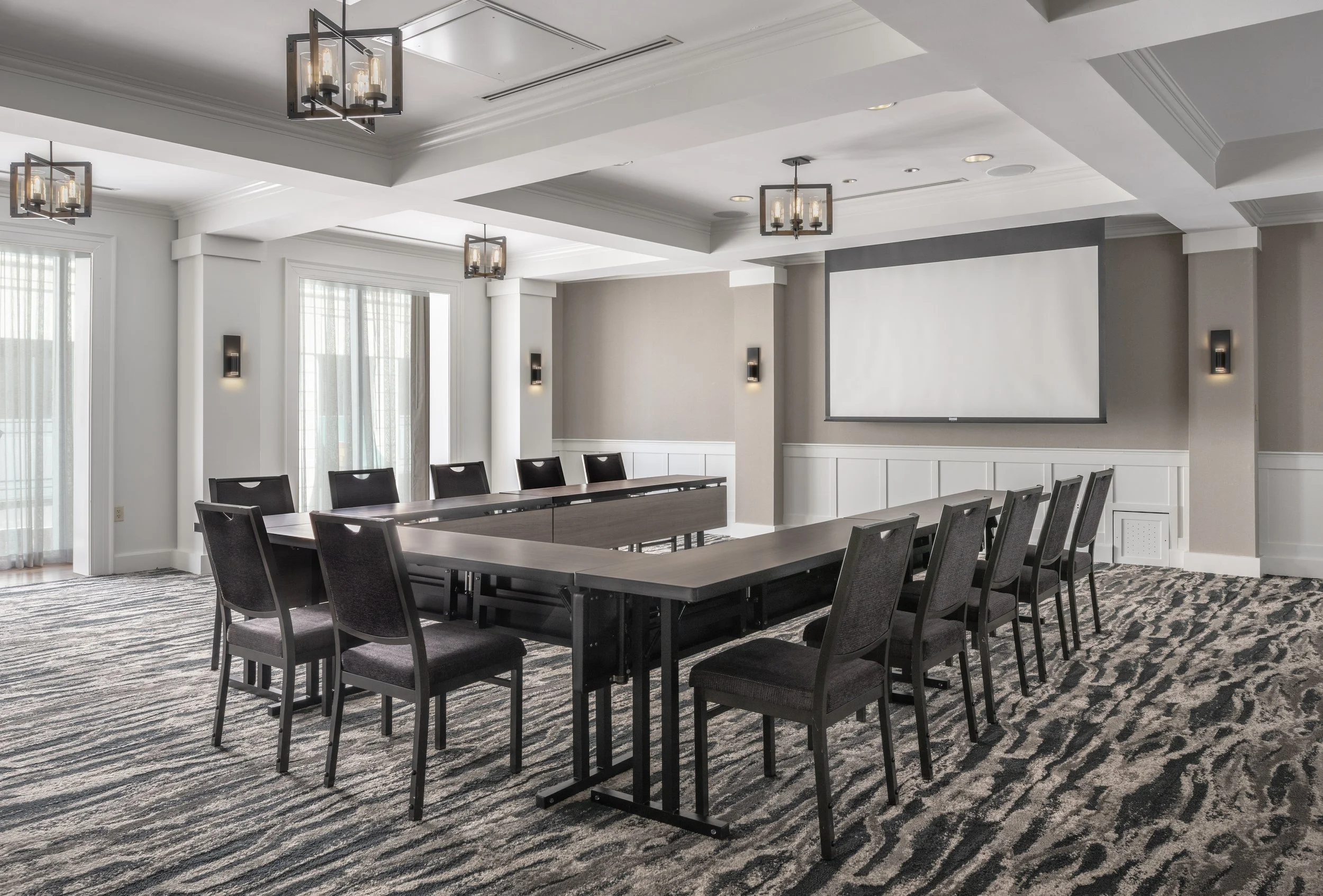 Host your next meeting, wedding, or special event in the heart of the Old Port at Portland Harbor Hotel, where flexible spaces and thoughtful service create a seamless experience from start to finish. The McKinley Room accommodates up to 55 guests for meetings or 120 for reception-style gatherings, while the Williams Room welcomes up to 45 for meetings and 80 for receptions—both featuring natural light, complimentary wireless internet, and modern AV capabilities. For weddings and banquets of up to 100 guests, personalized service and exceptional cuisine set the tone, with dining styles ranging from plated dinners and buffets to interactive stations. Events can also extend into the garden-inspired setting of Harbor Bistro + Terrace, offering indoor dining and seasonal terrace space for an inviting, open-air atmosphere.